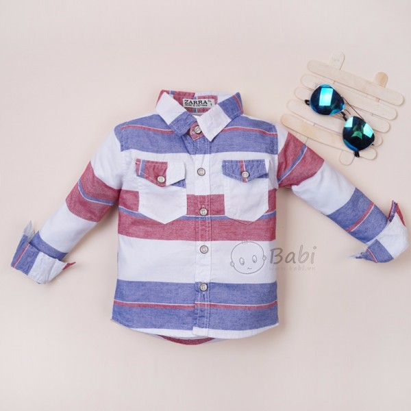 Áo sơ mi caro tay dài cho bé trai phối túi cực tây – Họa tiết caro độc đáo với cách phối màu đẹp mắt, giúp bé thật nổi bật và nam tính.